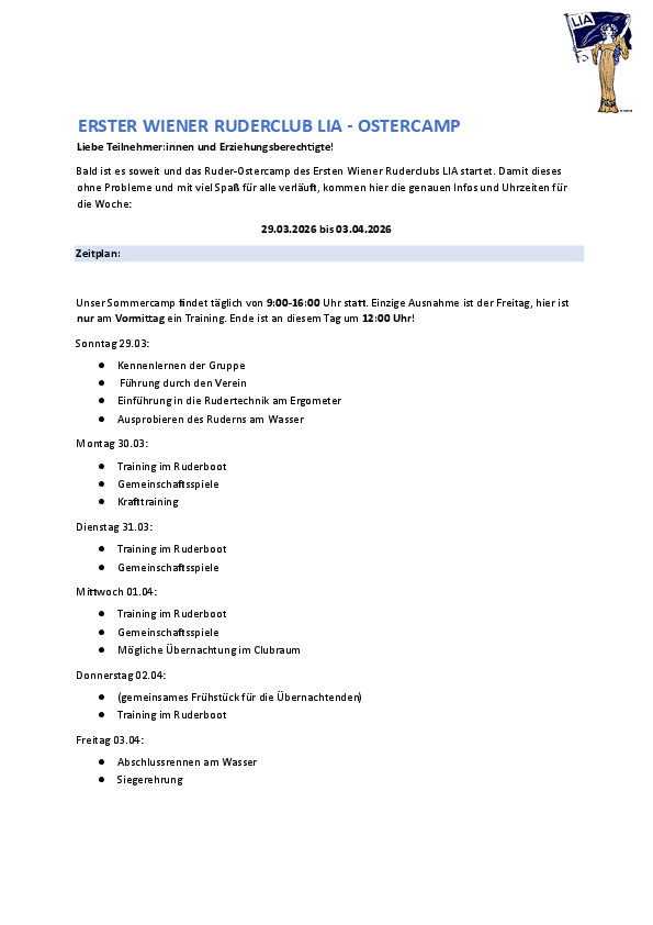 Anbei findet ihr den Flyer zu unserem diesjährigen LIA-Ostercamp.