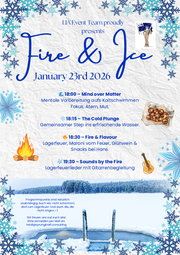 Das LIA Event Team lädt am 23.1. zum Eisschwimmen in der Alten Donau ein. Ort: LIA Floß