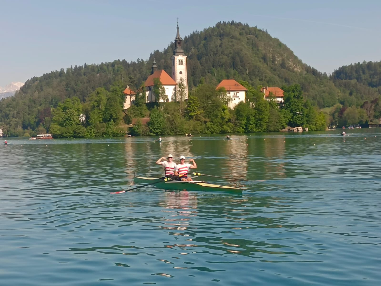 Erstmals wurden die Klagenfurter und die Bleder Regatta zur Alpen Adria Regatta zusammengelegt und soll von heuer an von Jahr zu Jahr alternierend stattfinden. Den Beginn dieser Kooperation machte Bled und der Veldessee zeigte sich von seiner allerschönsten Seite. Feinstes Frühlingswetter, wolkenlos, angenehme 23 Grad, kaum Wind – einfach optimale Regattabedingungen. Die Kulisse war ja schon fast kitschig. Regattaleiter Jernej Slivnik und seinem Team gelang eine großartige Organisation und die starken Teilnehmerfelder sorgten für hohe Qualität und super Wettkämpfe. Es waren Teilnehmerinnen und Teilnehmer aus Ungarn, Slowenien, Italien und Österreich, sogar ein deutsches Team wagte sich in den Süden. Diese Synergie war eine tolle Sache – im Vergleich zu den vergangenen Jahren, wo sich die beiden Regatten zeitgleich konkurrierten und in Klagenfurt wenig los war und in Bled sich das gleiche Bild bot.