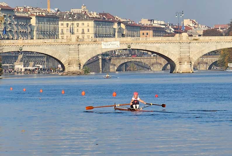 Donnerstag starteten Barbara und Joe direkt nach dem Training den Bootstransport. Kati und ich stiegen abends in den Flieger nach Bergamo und der Rest kam Freitags nach. Ein lustiger Mix aus Steiner RC, Pirat und Lia fand in Turin zusammen. Unsere Übernachtung in der Altstadt Bergamos hat sich absolut gelohnt. Und am Freitagnachmittag konnten wir noch bei Sonnenschein und Windstille die Strecke abrudern…Traumhafte Herbststimmung mit einmaliger Kulisse und italienischem Flair machten schon den Trainingslauf zum Highlight.