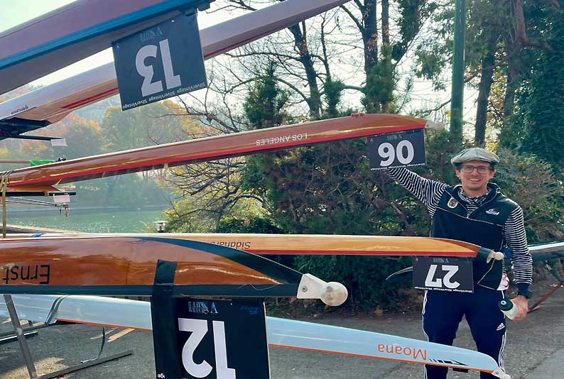 Folgende Nachricht bekomme ich Mitte September per WhatsApp: „ Servus Georg,. Ich wollte fragen ob du mir helfen kannst. Ich würde gern beim Vintageskiff in Turin Teilnehmen. Die Anforderungen ans Boot machen das aber challenging. Boat type: only vintage wooden skiffs are allowed. Construction date: Boat must been built up to 1991. Equipment: wooden trolley and pedal board (secured with laces or Velcro sandals. Aluminium oarlocks. Wooden oars fitted with macon style shovel! Hättest du eine Idee, wo ich so ein Boot finden kann und wo ich die Chance habe es auszuborgen? Boote hätten wir ja, aber nicht mehr die Dollen. 20Sekunden Zeitstrafe für jeden Regelverstoß. LG Joe vom Pirat.“