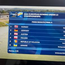 Elias Hautsch hatte sich nach seinem knappen vierten Platz bei den U23 Weltmeisterschaften auch für die Europameisterschaften in Racice qualifiziert. 6 Boote sind gemeldet, darunter die Rivalen, die unserem Doppelzweier die Medaille bei der WM auf den letzten 150 Metern noch entrissen haben. Vielleicht kommt es zu einer Revanche - gut möglich. Das Rennen um die Startbahnen am Samstag endete für unsere Crew wieder mit dem vierten Platz - da ging es aber noch um nichts. Heute gehts zur Sache - Daumen halten für Elias und Matthias.